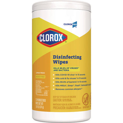 Clorox Disinfecting Wipes, 7 x 8, Lemon Fresh, 75/Canister Disinfecting Wipes Are Proven To Kill Covid-19 Virus On Hard, Nonporous Surfaces When U...