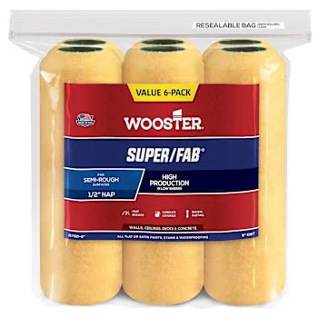 View full detailsWooster® Super/Fab® Paint Roller Cover 9" .5" Nap Pkg Of 6 Shed-Resistant And High-Capacity Controlled Release, Prevents Drips And Sagging Cor...
