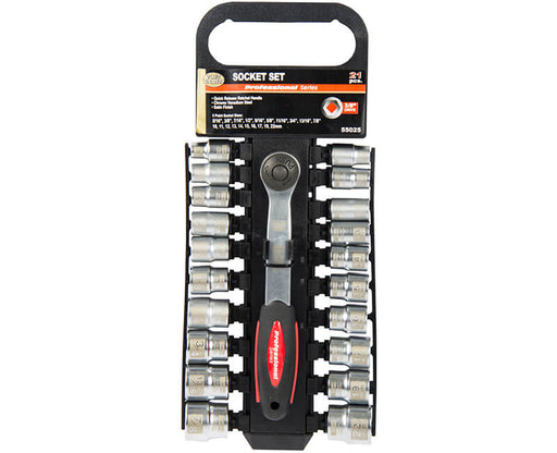 5/16”, 3/8”, 7/16”, 1/2”, 9/16”, 5/8”, 11/16”, 3/4” 13/16”, 7/8”, 10, 11, 12, 13, 14, 15, 16, 17, 19, 22mm 3/8 Drive • Satin Chrome Finish • Chrome...