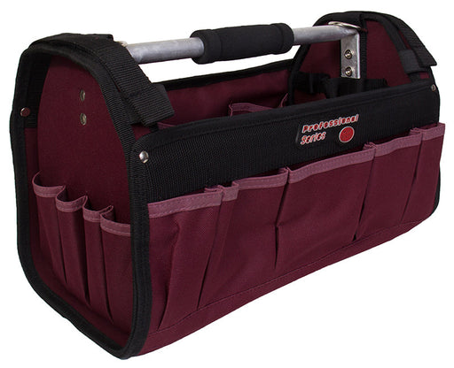17-1/2”L x 9-1/2”W x 13”H • Wide Opening With Zipper • Adjustable Shoulder Strap • Heavy Duty Designed Tool Holders (8) Inside Pockets (18) Asso...