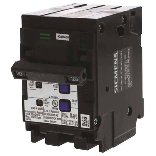 View full detailsSiemens 20 Amp 2-Pole Qafn Afci 10 Ka Breaker Simply Installs Like Any Other Breaker, Now Without The Pigtail 10,000 Aic Hacr And Swd Rated Ul Lis...