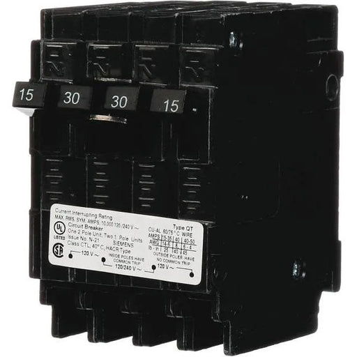 View full detailsSiemens Triplex 2-Outer 15A 1-Pole And 1-Inner 30A 2-Pole Circuit Breaker Triplex Circuit Breaker Features Two Single Poles On The Outside And A D...