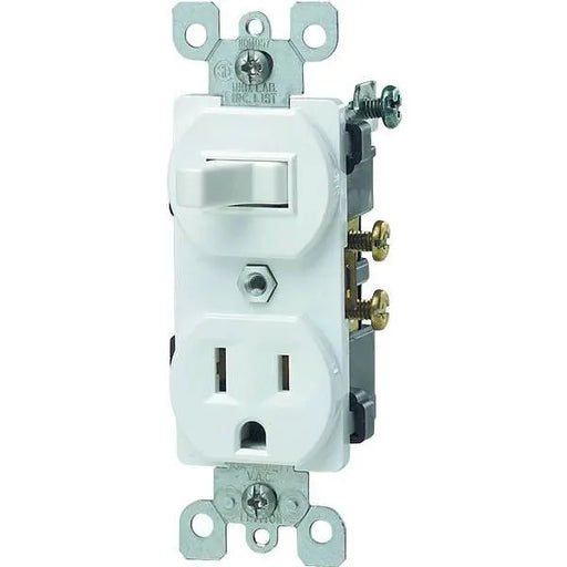 View full detailsLeviton 15 Amp Commercial Grade Combination Single Pole Toggle Switch and Receptacle, White 5225-W Ac Quiet Switches Have Silver Alloy Contacts An...